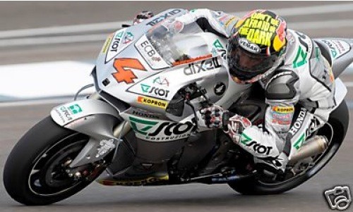 Este es el casco que Dovizioso lució en el pasado GP de Indianápolis, un casco diseñado en colaboración con Andrea Rosso, director de arte de 55DSL, con el lema "Don't be afraid of the Dark" impreso. Yo no se si será por la fenomenal temporada de Andrea en MotoGP (estoy de acuerdo con que si no existiese Jorge Lorenzo sería la sensacion de la temporada), pero la puja va por los 1.100 euros en compra inmediata.