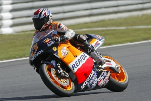Pilotar esta moto me ha traído muy buenos recuerdos. Creo que la NSR 500 es probablemente una de las mejores motos que se han hecho jamás, y ha sido bonito ver a los fans disfrutar del sonido de las 500cc. una vez más. Tengo mi otra Repsol Honda NSR 500cc. del ’99 en mi casa. Ésta de aquí es del Honda Collection Hall, e iba muy bien. El motor sigue teniendo una gran potencia. He tenido una pequeña derrapada en mi primera vuelta. He accionado el puño del acelerador y he notado cómo empezaba a deslizar, así que me he dicho que era mejor ir con cuidado, ¡que estas motos no tienen control de tracción! Comparado con las modernas máquinas de MotoGP, todo es diferente. Las 500cc. no tienen freno motor y la curva de potencia es mucho más estrecha que en un motor de cuatro tiempos.