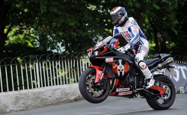 Como ya nos adelantó L.Font hace un par de meses, Ángel Nieto y Jorge Lorenzo acudieron al Tourist Trophy de la Isla de Man como embajadores de Dainese. A lomos de una Yamaha R1 cada uno (al final el 12+1 no fue de paquete del mallorquín), se dieron una vuelta al mítico trazado de la montaña antes de la carrera de Senior TT. Y tras completar los casi 61 kilómetros del trazado, vieron la carrera desde un jardín privado en Bray Hill.