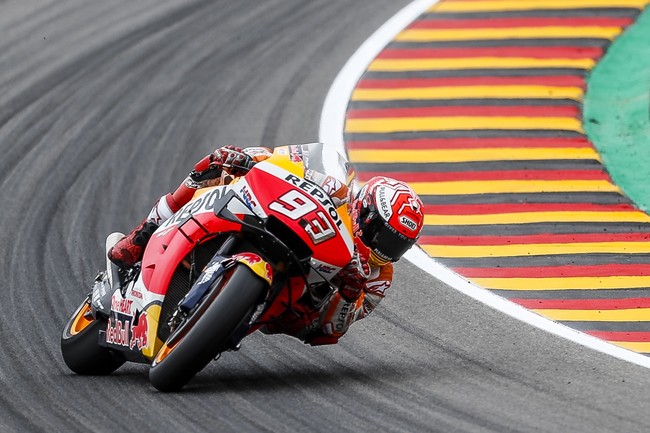 Márquez continuó rodando en solitario con la autoridad que caracteriza al piloto español en Sachsenring hasta conseguir su décima victoria consevutiva en el trazado alemán.