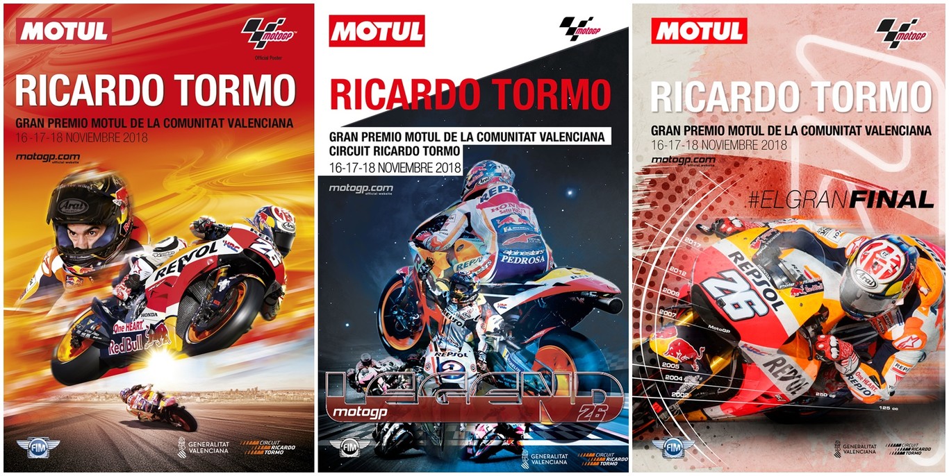 Como no podía ser de otra manera, desde el Circuit Ricardo Tormo han querido dedicar ese último cartel de forma íntegra al piloto del Repsol Honda, pero no saben cuál de las tres opciones que han diseñado elegir. Por ello han hecho un llamamiento a la afición para que participe a través de su página web y decida cuál será la versión final.