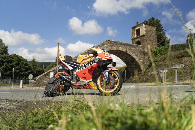 Hay muchas formas de hacer el Camino de Santiago, pero esta seguro que es la más peculiar. La Honda RC213V de Marc Márquez ha seguido los pasos del apóstol en un acto promocional del equipo Repsol Honda en colaboración con la Xunta de Galicia. Y el viaje ha dado pie a imágenes únicas.