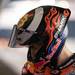 En la parte superior del casco Shark vuelve a aparecer la imagen de Chupa Chups, antiguo patrocinador del piloto. Precisamente ese logotipo tapa un poco al de la imagen de marca del corredor: el X fuera. Algo que no ha gustado a algunos de sus seguidores en las redes sociales.