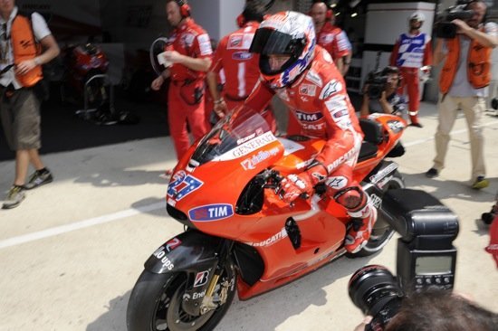 Siempre hay rumores circulando por el paddock de MotoGP, y cuanto más avanzada la temporada esto se hace más evidente. Por eso me sorprende leer que Casey Stoner ha pensado ya en abandonar la Ducati de sus amores (y laureles pasados) para pasarse a la competencia. Honda HRC para más datos. Según “una fuente autorizada dentro de Ducati”, Stoner no habría firmado nada, pero sí que habría comentado públicamente su deseo de cambiar.