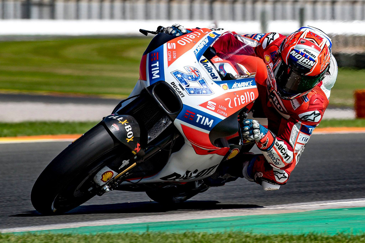 Los resultados obtenidos por los pilotos parece que muestran que la GP17 se desenvuelve muy bien en el Ricardo Tormo, y no solo eso, también muestran que Stoner sigue en plena forma a pesar de haber abandonado el mundial hace ya cinco años. El australiano ha volado con la Ducati y se ha quedado a tan solo siete décimas de la vuelta rápida que está en propiedad de Lorenzo desde 2016.