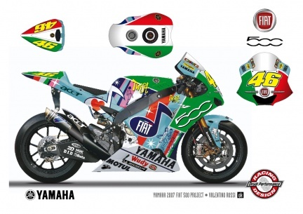 Coincidiendo con la presentación mundial en Turín el próximo día 4 de julio del "nuevo" FIAT 500, el equipo FIAT Yamaha de MotoGP va a estrenar unas decoraciones especiales en sus motos diseñada por Drudi.