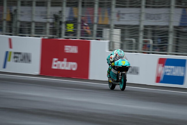 Por detrás, Izan Guevara ha conseguido una segunda posición bastante sólida, pero la mayor emoción ha sido la pelea por la tercera. Carlos Tatay consigue el primer podio de su carrera en el mundial tras un apasionante duelo de última vuelta con Sergio García. A Andrea Migno lo tiró Ayumu Sasaki.