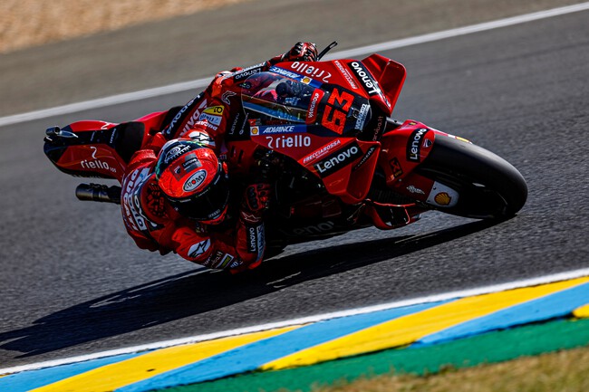 Que miedo da Ducati. Pecco Bagnaia ha hecho su segunda pole position consecutiva en territorio de Fabio Quartararo. Si hace quince días lo logró en Jerez, esta vez ha sido en Le Mans, y además batiendo el récord del circuito. Un impresionante 1:30.450 que pone las orejas tiesas a toda la competencia.