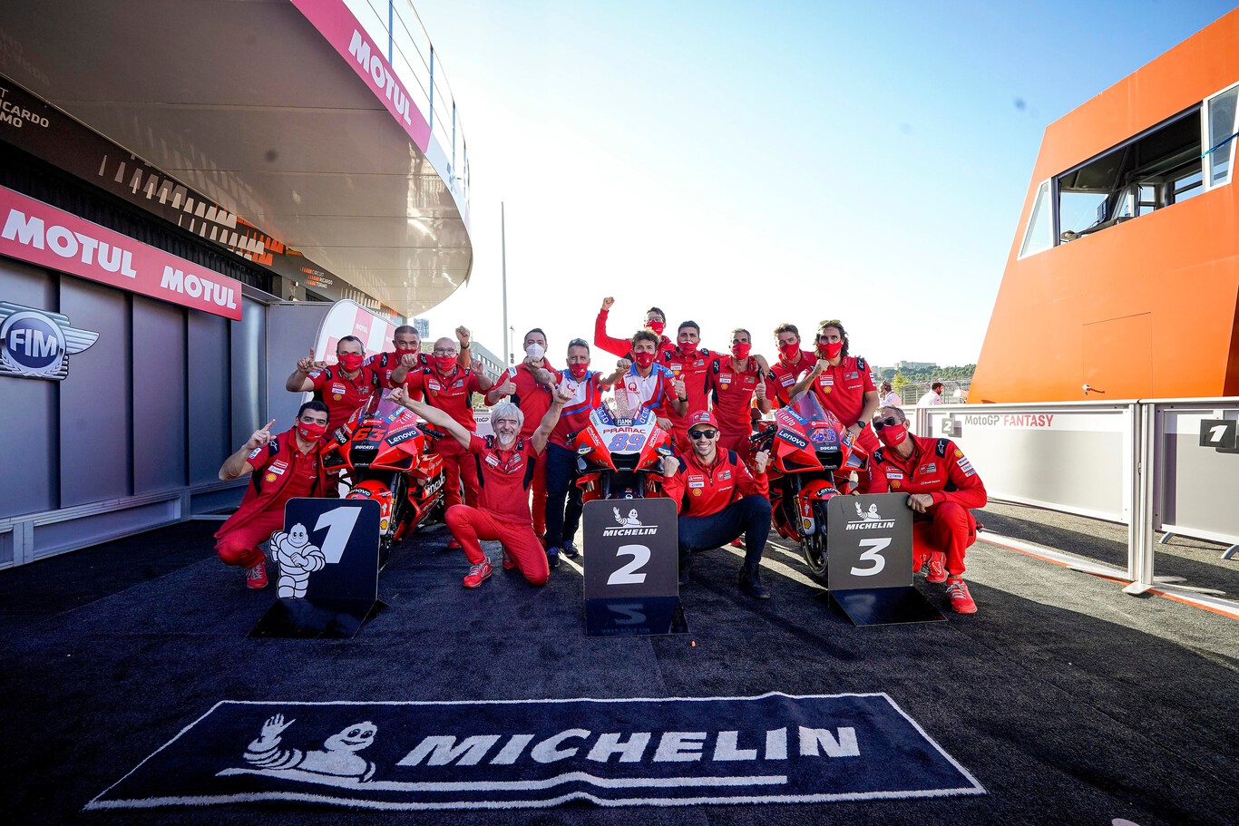 Ya venía siendo evidente en las últimas carreras, pero el Gran Premio de Valencia ha terminado de confirmarlo: la Ducati Desmosedici GP21 es la mejor moto de MotoGP. Pecco Bagnaia, Jorge Martín y Jack Miller culminaron en Cheste un triplete histórico para la marca, ya que es el primero que logran en MotoGP.
