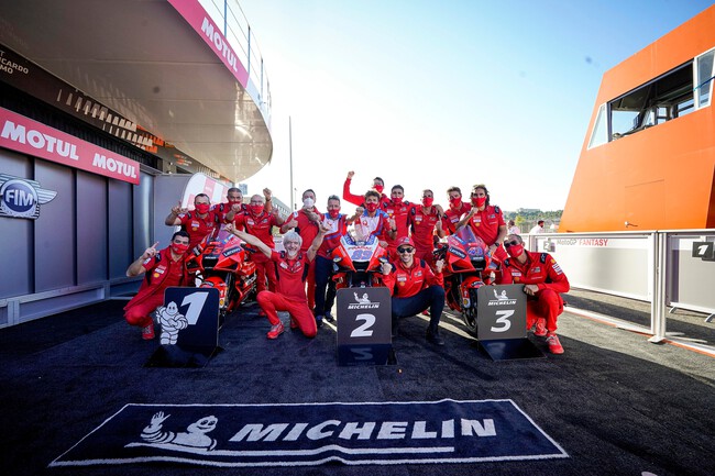 El de Ducati es el 21º triplete de la historia de MotoGP y el único que se ha producido en la temporada 2021. El anterior precedente se remonta al Gran Premio de Andalucía de 2020, donde ganó Fabio Quartararo, quedó segundo Maverick Viñales y Valentino Rossi logró su último podio en MotoGP. Fue un triplete de Yamaha.