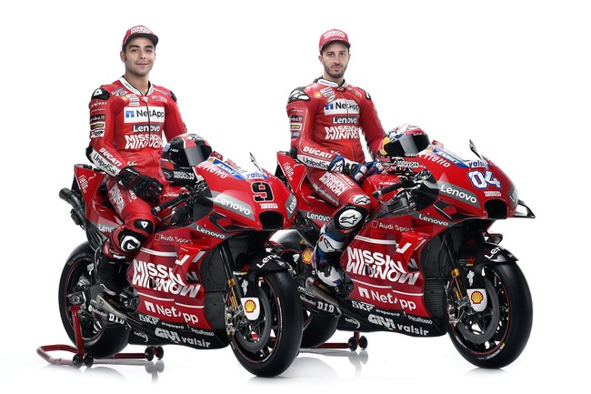 De cara a 2019 la Ducati Desmosedici GP19 se viste, aún más, de rojo. Uno de los principales cambios viene en el lateral y dejará de poner el nombre de Ducati en favor de Mission Winnow, que se trata de un proyecto en común de Philip Morris y Ferrari.