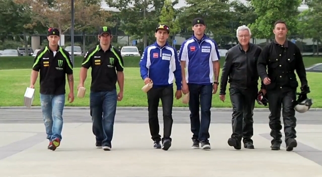 Este año Yamaha nos vuelve a ofrecer un vídeo para celebrar la llegada del Mundial de MotoGP al circuito de Laguna Seca en California (USA). Este año no han contado con Kenny Roberts ni con Wayne Rainey como invitados, sino con los comentaristas de televisión Nick Harris y Gavin Emmett y los cuatro pilotos que corren esta temporada con la marca de los diapasones. Resulta curioso que conforme va evolucionando el vídeo cada uno de estos cuatro pilotos muestra un poco el rol que tienen dentro del propio mundial.