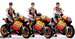 Joder, tanta moto igual, con tanto mono idéntico... la verdad es que acojonan un poco. Parecen un ejército. Desde luego es una imagen inusual y potente esto de ver tres motos del mismo equipo (además de que las motos de Repsol siempre han sido preciosas).