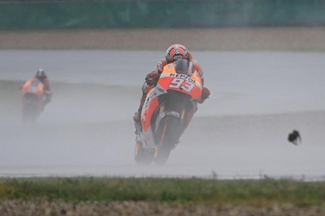 No ha sido un día demasiado productivo en cuanto al tiempo se refiere ya que han tenido condiciones mixtas. Tras amanecer con buen tiempo, a eso de las 11:30 de la mañana la lluvia ha hecho acto de presencia y ambos pilotos han decidido continuar rodando y así mejorar la puesta a punto de la moto en agua. Durante estas pruebas en mojado, Marc Márquez ha perdido la rueda delantera en la curva 5 y ha sufrido una pequeña caída sin consecuencias.