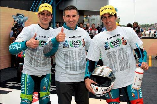 J. M. Aspar: No especialmente, considero que cada cosa ha de pasar en su momento determinado. Por mi parte viví muy intensamente mi época de éxito como piloto, y ahora disfruto el éxito en el plano empresarial. Por supuesto que mis victorias y hazañas las vivía mucho más intensamente que ahora. Las victorias del equipo también son muy bonitas, pero la alegría se comparte, antes era distinto. De todas formas estoy muy feliz por ir cumpliendo etapas en este mundo que tanto amo.