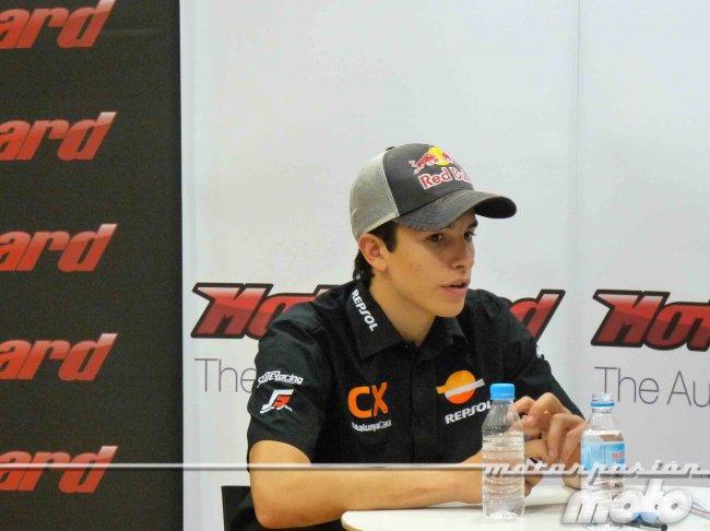 Y de la misma forma que es bueno encima de la moto, lo es cuando se baja de ella. Y es que el pasado martes 7 de junio tuvimos la oportunidad de que nos concediera una pequeña entrevista en el acto promocional realizado en Barcelona, concretamente en la tienda Motocard Barcelona 2 en calle Tuset. Marc Márquez llegó dispuesto a todo, incluso a una larga sesión fotográfica para la propia empresa de equipación del motorista o para los medios de comunicación allí presentes. El piloto del Team Repsol Catalunya Caixa nos concedió unos minutos para hablar de su carrera deportiva, de su paso por 125cc, de su estancia en Moto2, de su futuro y de su vida privada (esto último en lo justo y adecuado).