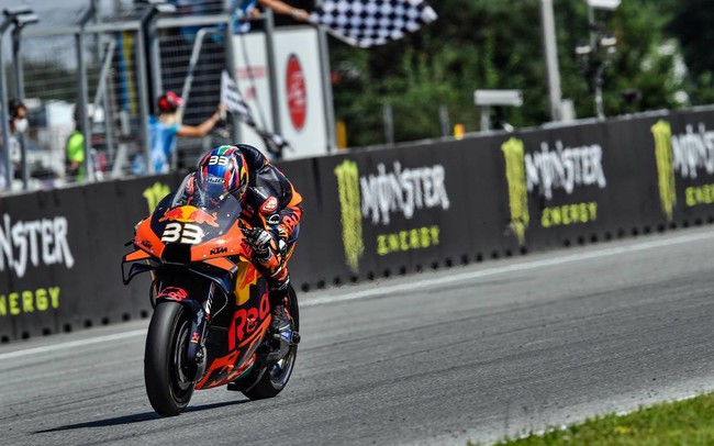 Celebrations all round! 🙌@BradBinder_41 makes history, taking his and @KTM_Racing first win in #MotoGP 🏆 #CzechGP 🇨🇿 pic.twitter.com/old12HGOFU
