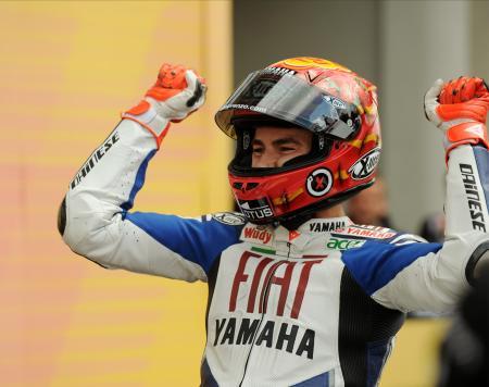 Bueno, eso son temas diferentes, y siempre es bueno exigirse cada vez más, pero las carreras que está protagonizando el de Mallorca están rozando cotas que, de seguir así, no me extrañaría que siguiésemos hablando de ellas durante mucho tiempo. En entrenamientos, rectos variados y una caidita. Calificación, bueno, digamos que bien pero no para tirar cohetes. La salida, peor, bastante mala dentro de lo que cabe. Unas vueltas de calentamiento, consolidar ritmo, unas gotas, cierra los ojos y le retuerce la oreja a la Yamaha M1 para terminar segundo por delante de Colin Edwards y de un Dani Pedrosa que era el teórico favorito para esta carrera, pero parece que debe echar en falta eso que a Lorenzo parece sobrar.