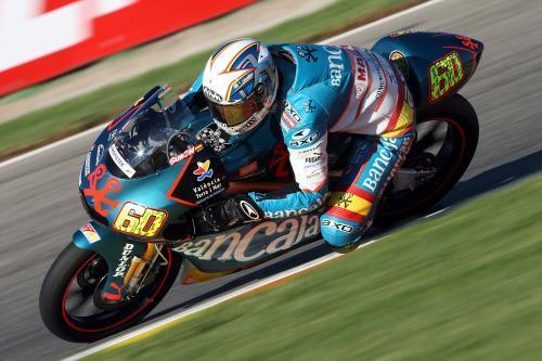 Julián Simón ha abierto la racha de victorias españolas al acabar primero en la carrera de 125 c.c en el Gran Premio de la Comunitat Valenciana. El y su compañero de equipo Bradley Smith han salido ocupando las dos primeras posiciones, con un ritmo infernal que no pudieron mantener el resto de competidores.