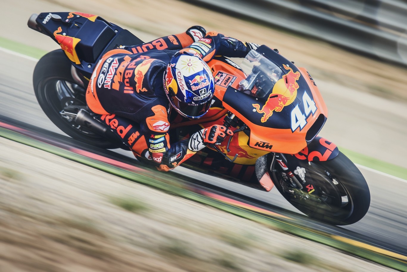 KTM ha disfrutado de dos días de test privados en el circuito de MotorLand Aragón. Allí, junto a sus pilotos oficiales de MotoGP, Pol Espargaró y Bradly Smith, y su piloto probador, Mika Kallio, Miguel Oliveira ha podido subirse por primera vez la RC16, una MotoGP con más de 260 CV de potencia.