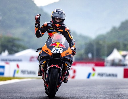 La de Miguel Oliveira fue la sexta victoria de KTM en el mundial de MotoGP. Cuatro han sido del piloto portugués y las dos restantes de Brad Binder, que ya lo rozó en Losail. KTM ha vencido bajo la lluvia en Indonesia con más de dos segundos de ventaja sobre Fabio Quartararo, y en Losail se quedó a tres décimas de Enea Bastianini.