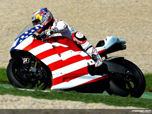 Lo que hay tiene que hacer Ducati para vender motos en USA, como si no tuvieran bastante con fichar al paquete Hayden, van y pintarrajean la moto con la bandera americana.