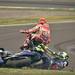 Rossi acabó en el suelo, volviendo a pista y finalizando fuera de los puntos sin culpa ninguna. El italiano con todo el derecho del mundo a estar cabreado salió de hablar con Dirección de Carrera y soltó la largada que todos ya conocemos, de nuevo, con todo el derecho del mundo.