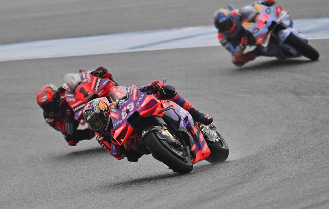 Martín consiguió esto batiendo a Bagnaia en la carrera sprint de Buriram utilizando una laguna legal que descubrió en el reglamento de MotoGP. Las normas dicen que no se puede pisar el verde más de tres veces por carrera, pero no dicen nada del azul, y eso fue lo que utilizó Martín para sentenciar medio mundial.