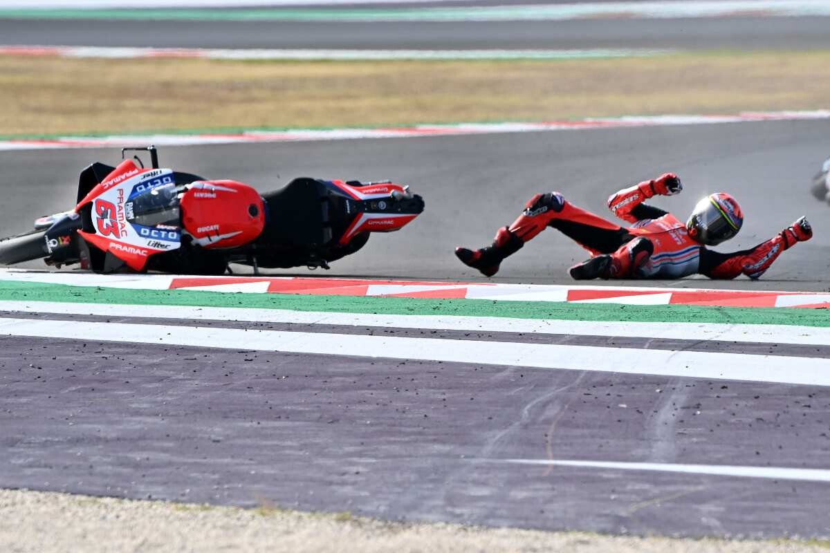 "Cuando estaba en el suelo no podía creerlo, me he caído como si hubiera tocado algo. Pensamos en eso, en el tear-off. La trazada era la misma, el gas era lo mismo, las suspensiones estaban en la misma posición así que no puede ser nada más", concluyó un Bagnaia que se lamentaba, porque decía tener totalmente controlado a Maverick Viñales.