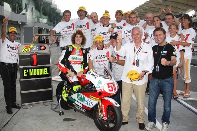 Como curiosidad para el año que viene podríamos ver un equipo dirigido por Alesso “Uccio” Salucci, el amigo de toda la vida de Valentino Rossi, que podría contar con Andrea Iannone como piloto. También se rumorea que Giampiero Sacchi (en la foto con la gorra de Dunlop en la mano) estaría preparando un equipo de Moto2 para la temporada 2011 con un par de pilotos. Sobre el invento del equipo de Uccio y Valentino no hay mucha información, de hecho hay quién lo considera un globo sonda. Pero sobre el equipo de Sacchi lo que se lee por la red es mucho más serio, sobre todo porque cuenta con la inmensa experiencia previa de Sacchi. Recordemos que Sacchi fue muchos años director general de Aprilia. Aunque el nombre del equipo también suena un poco a broma, Yoda Racing Project.