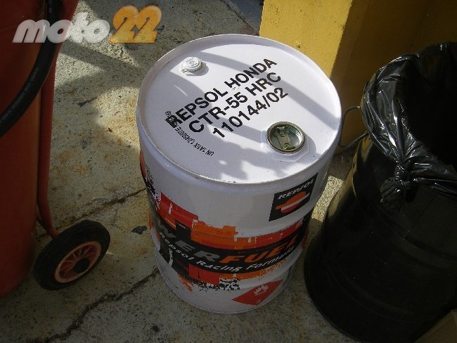 Esto me dejó con la mosca detrás de la oreja y que mejor oportunidad que el GP de Valencia para preguntar, observar y ver cual es el tratamiento que le dan los equipos al preciado líquido que hace que sus motos rindan al máximo. En el caso que nos ocupa Marc efectivamente dispone esta temporada de un lubricante desarrollado en el Centro de Tecnología de Repsol situado en Móstoles y fabricado en el Complejo Industrial de Puertollano, pero sobre la gasolina hay que seguir investigando.