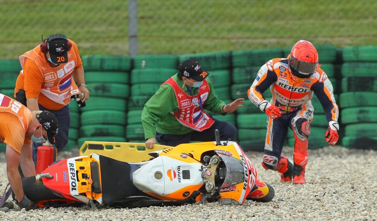 Marc Márquez sufrió en Assen una de sus caídas más duras desde que regresó a la competición. El piloto español salió volando de su moto durante los segundos entrenamientos libres, una caída muy fea que afortunadamente se saldó sin daños físicos para él. Pero ante los micrófonos no dudó en darle un toque de atención muy serio a su equipo.