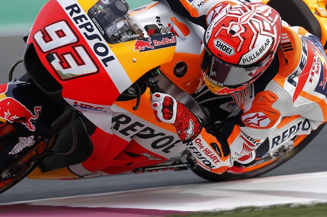 En la carrera del año pasado en el circuito de Losail Marc Márquez reconoció haberse equivocado con la elección de la goma delantero, esta vez no ha querido cometer el mismo error y aunque la mayoría de pilotos optaron por montar el neumático medio él usó el duro: "En las curvas de izquierda sufría un poco, pero con el medio no hubiese terminado la carrera", reconoció, ya que el trazado catarí suele hacer un desgaste muy alto que reconocen todos los pilotos.