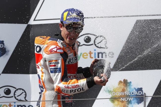 Por otro, ha vuelto a aumentar su ventaja en la general respecto a Valentino Rossi, que ahora está a 59 puntos del español: "No se pueden ganar todas las batallas, lo importante es la guerra. Si se van repartiendo las victorias va bien, yo lo firmo ya. Si se pone en una dinámica de ganar uno siempre es más peligroso entonces. Nosotros estamos aprovechando las oportunidades que nos dan y vamos aumentado la ventaja", ha explicado el #93.