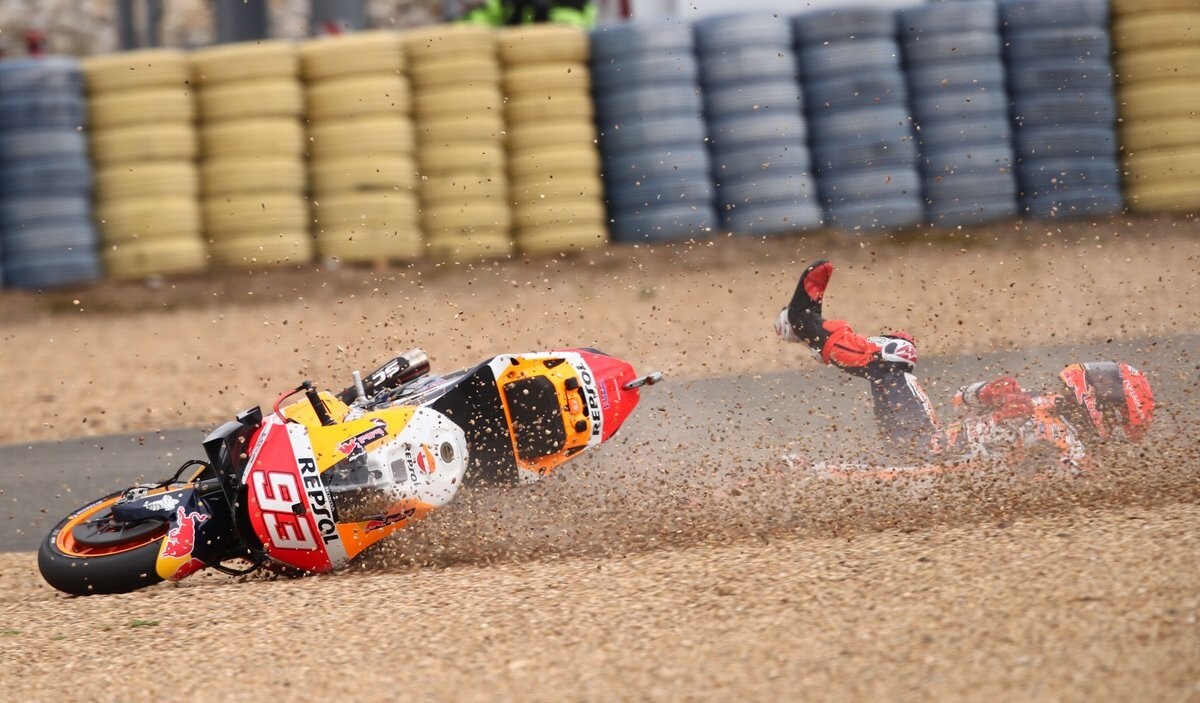 En los diez Grandes Premios que ha disputado, Marc Márquez lleva ya 16 caídas, algunas de ellas muy duras como la de la semana pasada en Silverstone o aquella en la que terminó empotrado contra las protecciones en Jerez. Tan solo Arón Canet, piloto de Moto2, lleva las mismas caídas que Márquez, pero con dos Grandes Premios más.