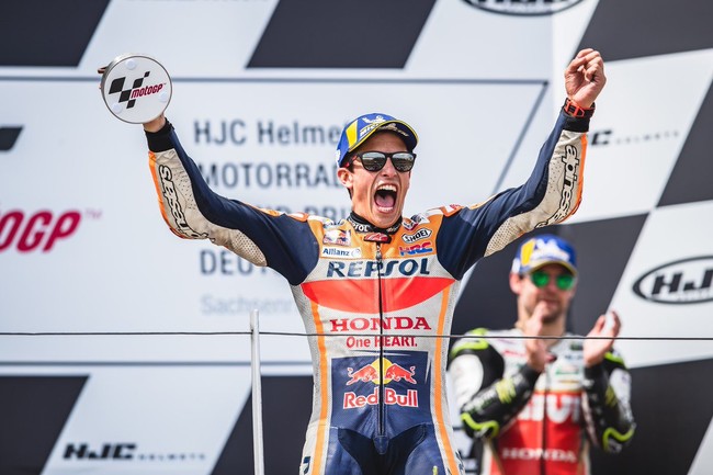 Todos sabíamos lo que iba a hacer y, aún así, lo hizo. Marc Márquez volvió a arrasar en el Gran Premio de Alemania sumando su décima victoria consecutiva en Sachsenring. Márquez mostró en el circuito alemán su versión más dura y arrolladora. Pulverizó el récord de la pole position y luego ganó la carrera sin ceder el liderato en ningún momento.