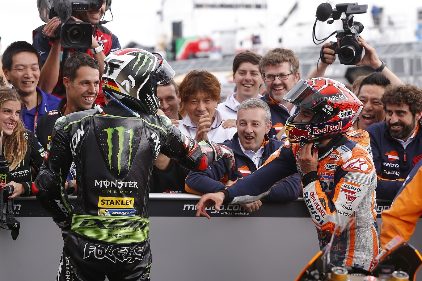 Primero fue Marc el que cogió rueda del alemán, pero cuando cambiaron los papeles el catalán no esperaba la fuerza y resistencia del piloto satélite: "Al principio me ha ido bien, porque ha tirado y cuando vas detrás de alguien no desgastas tanto los neumáticos. Después ya no estaba tan centrado, empezaba a cambiar mucho las líneas, y ahí me ha dejado pasar. Él dice que ha cometido un error pero me ha dejado pasar para ir enganchado. Lo sabía y al final era mi obligación, marcar el ritmo de carrera".