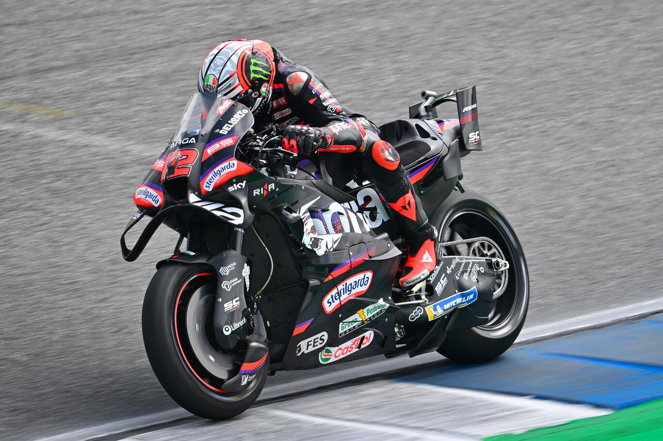 Solo Pedro Acosta ha sido capaz de romper el pleno de Aprilia con un podio que le permite ser el primer líder del mundial de la temporada. Mucho peor le fue a Marc Márquez, que tuvo que abandonar la carrera por una pequeña salida de pista en la que golpeó el neumático con el piano y terminó desllantado la rueda trasera.
