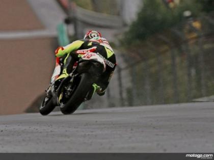 Dejábamos la crónica de 125cc comentando que habían empezado a caer algunas gotas, y ¡vaya si cayeron! Con el semáforo verde, Julito Simón se colocaba en cabeza, pero Simoncelli aprovechó un susto del piloto español para ponerse en cabeza y a ritmo de vuelta rápida consecutiva, poner tierra de por medio (hasta una diferencia de ocho segundos). Por detrás, Bautista y Debón se tocaban, haciendo que Álvaro pasase por meta en la decimosexta posición y obligándolo a realizar una gran remontada.