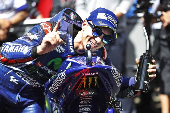 Ha sido un fin de semana muy especial que todo el equipo Movistar Yamaha MotoGP puede marcar en su calendario de recuerdos. Bueno, todo el equipo no, al menos en el lado de Valentino Rossi las caras no pueden ser tan felices. Hoy Valentino volvió a jugar sus cartas como personaje regular hasta el extremo, y las jugó bien, pero Maverick le ganó en esa lid que el italiano domina a la perfección: las carreras psicológicas.
