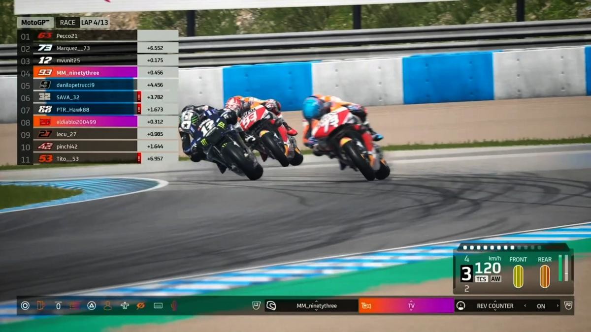 La actuación de Quartararo se parece sorprendentemente a la realidad. El piloto francés volvió a hacer la pole, pero ya en la salida se vio involucrado en un incidente. A partir de ahí no pudo remontar y terminó octavo. Viñales, que también se vio implicado en el lío, recuperó hasta ganar la carrera.