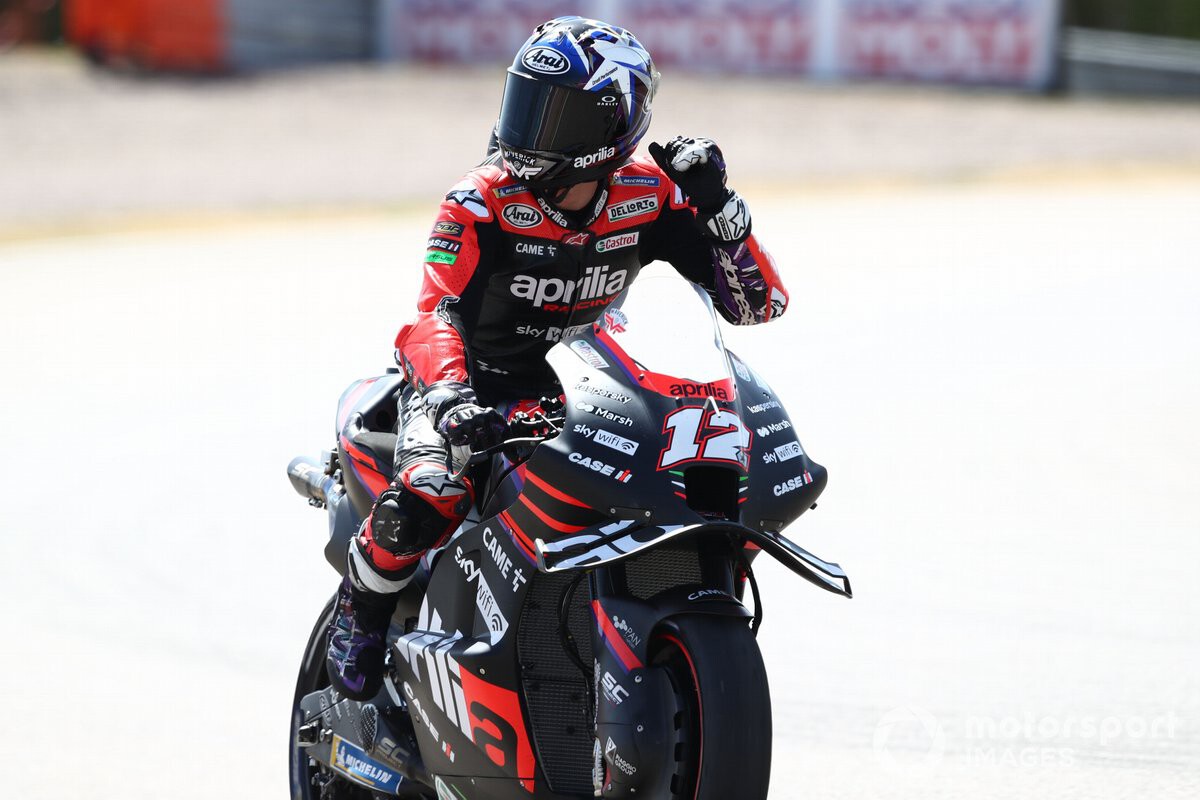 Maverick Viñales sigue progresando en su aventura con Aprilia. El piloto español tuvo en Sachsenring su mejor fin de semana desde que corre con la marca de Noale, aunque terminase abandonando la carrera por una desafortunada avería mecánica. Pero por primera vez estuvo muy cerca de Aleix Espargaró.