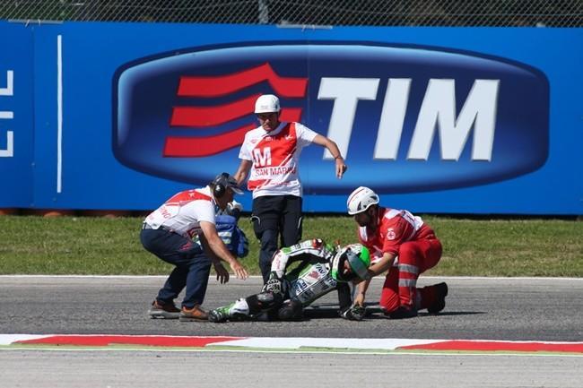 En el pasado Gran Premio de San Marino, entre las curvas 1 y 2, el piloto francés del Avintia Racing Mike Di Meglio se fue al suelo con la mala fortuna de que se lesionó la mano izquierda, teniendo que ser intervenido quirúrgicamente este lunes pasado en el hospital Quirón Dexeus de Barcelona.
