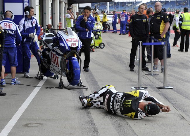 De esta manera Colin Edwards se iría al box del Fiat Yamaha y en su lugar entraría Cal Crutchlow a pilotar la Yamaha M1 del Tech3, que no parece tan explosiva como la moto del equipo "oficial", pero con lo que nadie contaba era con la excepcional carrera que hizo Ben Spies el domingo pasado. Tercer puesto que le postula como el sustituto perfecto para Valentino mientras se recupera, y además serviría para que Spies se fuera integrando en el que parece que será su equipo del año que viene. El problema lo tiene ahora Dorna, que ha de hacer una excepción en su absurda regla que impide que un novato se suba directamente a una moto oficial el primer año de su participación en el mundial. Y parece que las negociaciones van por buen camino.