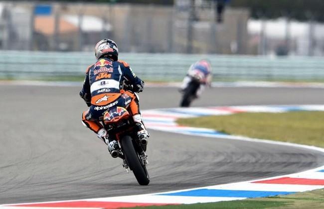 El intento de escapada de Jack Miller y Álex Márquez fue neutralizado en la novena vuelta por un grupo perseguidor de tres pilotos formado por Brad Binder, Alexis Masbou y Danny Kent. El más batallador de todos fue precisamente un Binder crecidísimo que se peleaba para meter en curva de forma espectacular a su Mahindra en cada frenada a final de meta.