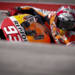 Marc seguía en cabeza poniendo metros por medio y Lorenzo, que se había vuelto a ir largo hasta perder la segunda plaza en favor de Dovizioso, conseguía recuperarse de su error y reconquistar el segundo puesto. Dovi quedaba bajo la presión de Dani Pedrosa, que venía muy fuerte y confiado después de haber pasado a Aleix Espargaró y ver el podio a tiro. Sin embargo, Dani perdía el control frenando en el cambio de rasante después de meta y se arrastraba por el asfalto hacia el exterior de la curva. Allí, por desgracia, se encontraba Dovizioso, quien trazaba abierto y no se esperaba el fuerte golpe que recibía de la moto del #26.