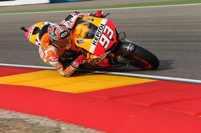 | Pos. | Num. | Piloto | País | Equipo | Moto | Km/h | Tiempo | Diferencia 1st/Prev. | | 1 | 93 | Marc MARQUEZ | SPA | Repsol Honda Team | Honda | 328.9 | 1'47.804 | | | 2 | 99 | Jorge LORENZO | SPA | Yamaha Factory Racing | Yamaha | 329.5 | 1'47.814 | 0.010 / 0.010 | | 3 | 26 | Dani PEDROSA | SPA | Repsol Honda Team | Honda | 334.0 | 1'47.957 | 0.153 / 0.143 | | 4 | 46 | Valentino ROSSI | ITA | Yamaha Factory Racing | Yamaha | 329.7 | 1'47.962 | 0.158 / 0.005 | | 5 | 6 | Stefan BRADL | GER | LCR Honda MotoGP | Honda | 334.6 | 1'48.128 | 0.324 / 0.166 | | 6 | 19 | Alvaro BAUTISTA | SPA | GO&FUN Honda Gresini | Honda | 330.4 | 1'48.302 | 0.498 / 0.174 | | 7 | 35 | Cal CRUTCHLOW | GBR | Monster Yamaha Tech 3 | Yamaha | 323.8 | 1'48.653 | 0.849 / 0.351 | | 8 | 38 | Bradley SMITH | GBR | Monster Yamaha Tech 3 | Yamaha | 328.2 | 1'48.854 | 1.050 / 0.201 | | 9 | 4 | Andrea DOVIZIOSO | ITA | Ducati Team | Ducati | 327.7 | 1'49.219 | 1.415 / 0.365 | | 10 | 41 | Aleix ESPARGARO | SPA | Power Electronics Aspar | ART | 317.8 | 1'49.348 | 1.544 / 0.129 | | 11 | 69 | Nicky HAYDEN | USA | Ducati Team | Ducati | 330.8 | 1'49.428 | 1.624 / 0.080 | | 12 | 29 | Andrea IANNONE | ITA | Energy T.I. Pramac Racing | Ducati | 324.3 | 1'50.094 | 2.290 / 0.666 | | 13 | 68 | Yonny HERNANDEZ | COL | Ignite Pramac Racing | Ducati | 325.2 | 1'50.685 | 0.961 / 0.291 | | 14 | 7 | Hiroshi AOYAMA | JPN | Avintia Blusens | FTR | 312.9 | 1'50.995 | 1.271 / 0.310 | | 15 | 9 | Danilo PETRUCCI | ITA | Came IodaRacing Project | Ioda-Suter | 306.0 | 1'51.030 | 1.306 / 0.035 | | 16 | 14 | Randy DE PUNIET | FRA | Power Electronics Aspar | ART | 311.8 | 1'51.297 | 1.573 / 0.267 | | 17 | 5 | Colin EDWARDS | USA | NGM Mobile Forward Racing | FTR Kawasaki | 311.0 | 1'51.327 | 1.603 / 0.030 | | 18 | 71 | Claudio CORTI | ITA | NGM Mobile Forward Racing | FTR Kawasaki | 312.6 | 1'51.519 | 1.795 / 0.192 | | 19 | 8 | Hector BARBERA | SPA | Avintia Blusens | FTR | 318.1 | 1'51.552 | 1.828 / 0.033 | | 20 | 70 | Michael LAVERTY | GBR | Paul Bird Motorsport | ART | 313.1 | 1'51.639 | 1.915 / 0.087 | | 21 | 67 | Bryan STARING | AUS | GO&FUN Honda Gresini | FTR Honda | 310.7 | 1'52.102 | 2.378 / 0.463 | | 22 | 23 | Luca SCASSA | ITA | Cardion AB Motoracing | ART | 311.0 | 1'52.305 | 2.581 / 0.203 | | 23 | 52 | Lukas PESEK | CZE | Came IodaRacing Project | Ioda-Suter | 303.4 | 1'52.989 | 3.265 / 0.684 | | 24 | 50 | Damian CUDLIN | AUS | Paul Bird Motorsport | PBM | 311.6 | 1'53.521 | 3.797 / 0.532 |