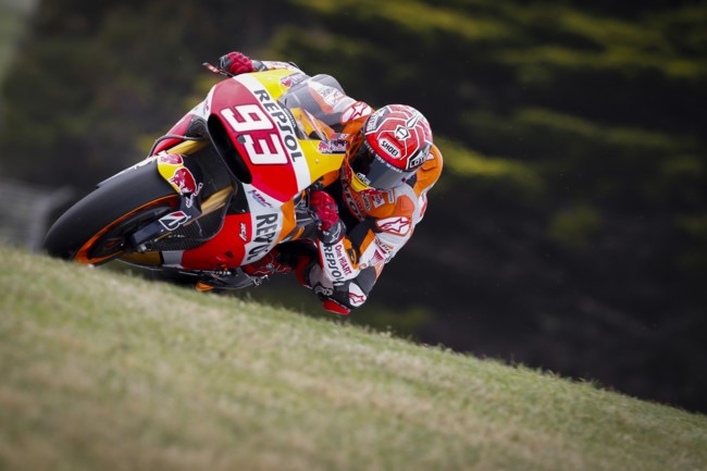 Marc Márquez ha marcado el ritmo de los entrenamientos del viernes en Phillip Island, a pesar de estar todavía convaleciente de la fractura que se hizo en la mano y de que ya ha perdido todas las posibilidades de renovar el título. El piloto del Repsol Honda Team sigue queriendo marcar hitos en su carrera. En Moto2 Álex Rins le ha "robado la cartera" a Alex Lowes en el último suspiro. Mientras que en Moto3 Miguel Oliveira sigue a la suya con un Danny Kent que no ha podido salir en la segunda sesión a la pista por un problema de Embrague en su Honda.