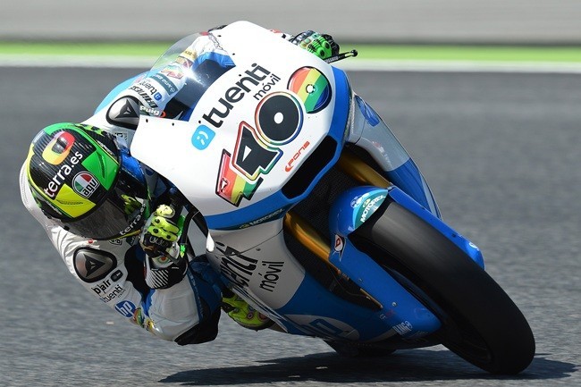 | Pos. | Puntos | Num. | Piloto | País | Equipo | Moto | Km/h | Tiempo/Diferencia | | 1 | 25 | 40 | Pol ESPARGARO | SPA | Tuenti HP 40 | Kalex | 157.9 | 41'17.307 | | 2 | 20 | 80 | Esteve RABAT | SPA | Tuenti HP 40 | Kalex | 157.9 | +0.081 | | 3 | 16 | 12 | Thomas LUTHI | SWI | Interwetten Paddock Moto2 Racing | Suter | 157.5 | 6.264 | | 4 | 13 | 45 | Scott REDDING | GBR | Marc VDS Racing Team | Kalex | 157.4 | 9.061 | | 5 | 11 | 30 | Takaaki NAKAGAMI | JPN | Italtrans Racing Team | Kalex | 157.3 | 10.597 | | 6 | 10 | 4 | Randy KRUMMENACHER | SWI | Technomag carXpert | Suter | 157.2 | 11.577 | | 7 | 9 | 5 | Johann ZARCO | FRA | Came Iodaracing Project | Suter | 157.0 | 15.569 | | 8 | 8 | 77 | Dominique AEGERTER | SWI | Technomag carXpert | Suter | 156.2 | 28.280 | | 9 | 7 | 36 | Mika KALLIO | FIN | Marc VDS Racing Team | Kalex | 156.2 | 28.352 | | 10 | 6 | 3 | Simone CORSI | ITA | NGM Mobile Racing | Speed Up | 156.1 | 28.461 | | 11 | 5 | 54 | Mattia PASINI | ITA | NGM Mobile Racing | Speed Up | 156.1 | 28.892 | | 12 | 4 | 63 | Mike DI MEGLIO | FRA | JiR Moto2 | Motobi | 156.0 | 31.215 | | 13 | 3 | 52 | Danny KENT | GBR | Tech 3 | Tech 3 | 156.0 | 31.318 | | 14 | 2 | 49 | Axel PONS | SPA | Tuenti HP 40 | Kalex | 155.9 | 31.757 | | 15 | 1 | 60 | Julian SIMON | SPA | Italtrans Racing Team | Kalex | 155.9 | 33.190 | | 16 | . | 18 | Nicolas TEROL | SPA | Aspar Team Moto2 | Suter | 155.8 | 34.092 | | 17 | . | 9 | Kyle SMITH | GBR | Blusens Avintia | Kalex | 155.2 | 44.392 | | 18 | . | 55 | Hafizh SYAHRIN | MAL | Petronas Raceline Malaysia | Kalex | 154.9 | 48.517 | | 19 | . | 27 | Dani RIVAS | SPA | TSR Motorsports | Kalex | 154.9 | 48.563 | | 20 | . | 72 | Yuki TAKAHASHI | JPN | IDEMITSU Honda Team Asia | Moriwaki | 154.9 | 48.719 | | 21 | . | 17 | Alberto MONCAYO | SPA | Argiñano & Gines Racing | Speed Up | 154.6 | 53.765 | | 22 | . | 7 | Doni Tata PRADITA | INA | Federal Oil Gresini Moto2 | Suter | 153.4 | +1'13.330 | | 23 | . | 88 | Ricard CARDUS | SPA | NGM Mobile Forward Racing | Speed Up | 152.9 | +1'21.740 | | NC | . | 14 | Ratthapark WILAIROT | THA | Thai Honda PTT Gresini Moto2 | Suter | 154.8 | 1 Vuelta | | NC | . | 95 | Anthony WEST | AUS | QMMF Racing Team | Speed Up | 154.0 | 5 Vueltas | | NC | . | 81 | Jordi TORRES | SPA | Aspar Team Moto2 | Suter | 156.5 | 6 Vueltas | | NC | . | 23 | Marcel SCHROTTER | GER | Desguaces La Torre SAG | Kalex | 151.3 | 6 Vueltas | | NC | . | 97 | Rafid Topan SUCIPTO | INA | QMMF Racing Team | Speed Up | 151.8 | 14 Vueltas | | NC | . | 11 | Sandro CORTESE | GER | Dynavolt Intact GP | Kalex | 148.1 | 16 Vueltas | | NC | . | 15 | Alex DE ANGELIS | RSM | NGM Mobile Forward Racing | Speed Up | 145.7 | 16 Vueltas | | NC | . | 19 | Xavier SIMEON | BEL | Desguaces La Torre Maptaq | Kalex | 153.3 | 21 Vueltas | | NC | . | 24 | Toni ELIAS | SPA | Blusens Avintia | Kalex | 84.3 | 22 Vueltas | | NC | . | 96 | Louis ROSSI | FRA | Tech 3 | Tech 3 | . | 0 Vuelta | | NC | . | 44 | Steven ODENDAAL | RSA | Argiñano & Gines Racing | Speed Up | . | 0 Vuelta |