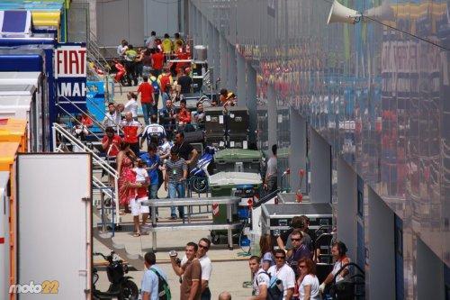 Si tienes suerte, la tarde del viernes y la del sábado es fácil colarse en los boxes y ver como trabaja la élite del motociclismo en sus máquinas. Sin duda lo que más me impresiona cuando entro en un box es la limpieza de todo, ni una gota de aceite en el suelo. Más que un box de motos parecen quirófanos.